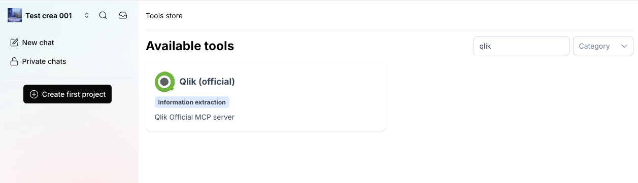 from the Mates & tools menu, go to Tools store and search for Qlik