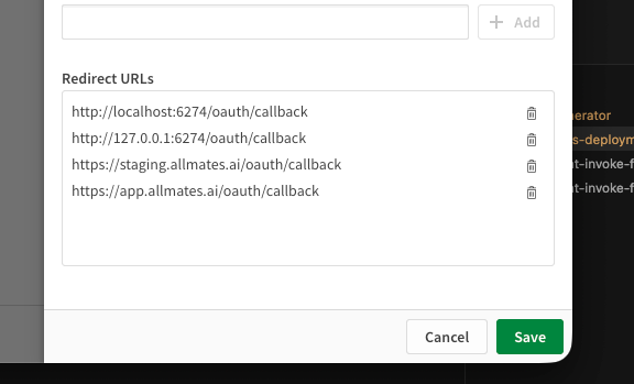 For instance, if you are using the multitenant Allmates instance, the URL to add will be: