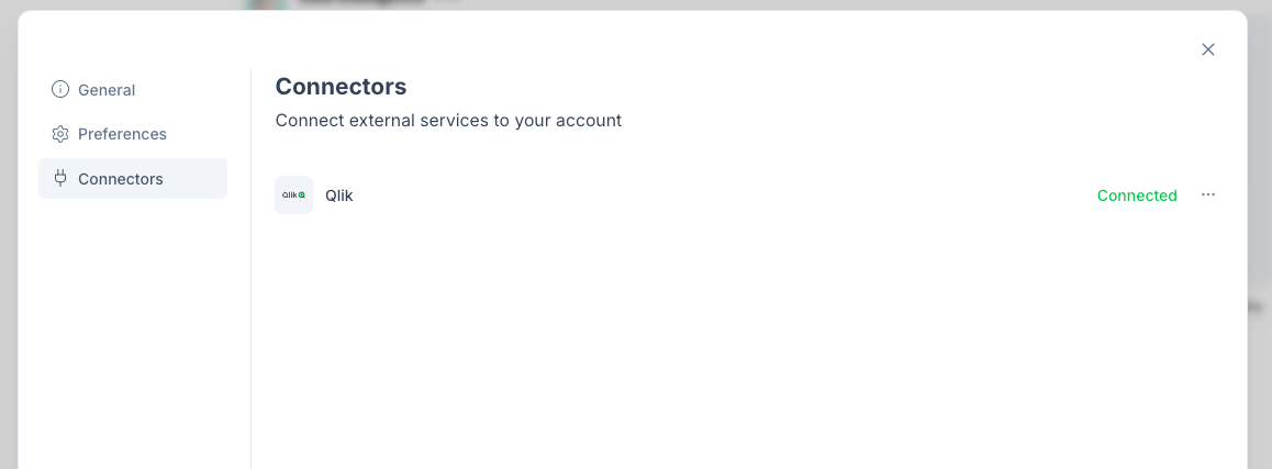 navigate to My Profile → Connectors and then on the Qlik entry click Connect