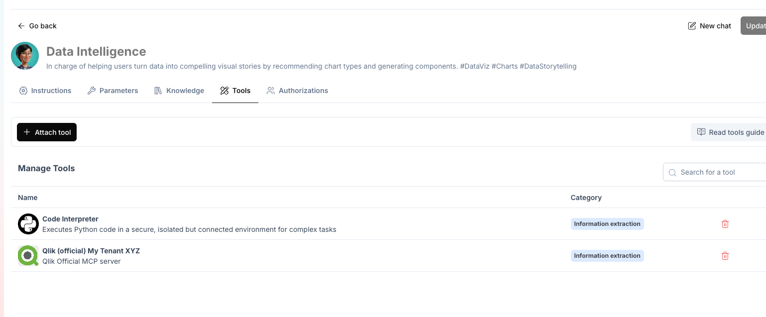 You can now attach the newly created Qlik tool instance to the mate of your choice