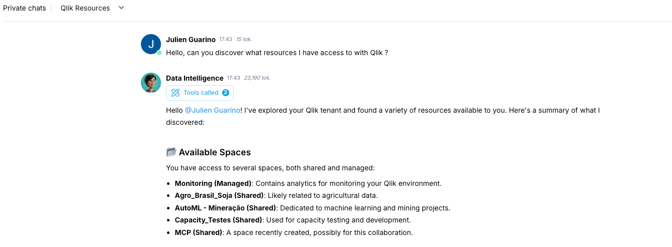 The Qlik MCP server is now functional, you can interact with it through your favorite mates !